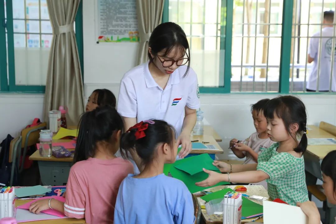 益教微光社會實(shí)踐隊(duì)隊(duì)員為后宅鎮(zhèn)中心小學(xué)學(xué)生精心設(shè)計了以“最美中國紅”為題的創(chuàng)意紙貼畫課程,鼓勵學(xué)生們用各色材料描繪出心中的中國紅,表達(dá)同學(xué)們對祖國的熱愛,引導(dǎo)同學(xué)們用真心去呵護(hù),用行動去表達(dá),用實(shí)踐去證實(shí),每一份中國紅!