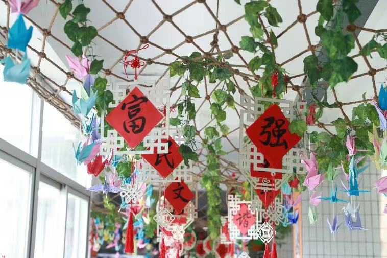 一把剪刀,一張彩紙,在一雙雙巧手下,紙屑翻飛。各種樣式精美,生動傳神的剪紙窗花,紛至沓來。孩子們用他們豐富的想象力,一下下剪出他們對祖國,對家鄉(xiāng)的美好展望。