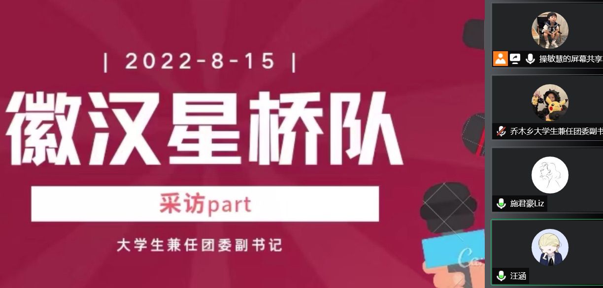 結束了一個學期忙碌的學習生活,我們迎來了暑假,但是這個暑假不同尋常。我們安徽大學徽漢星橋實踐隊飽含高昂的實踐熱情聚集在一起,準備利用此次暑期的時間走進鄉村,探訪村民,以己之力,助力鄉村振興。但是在疫情防控的大背景下,我們的出行受到了限制。不過我們創新性地選擇了線上線下相結合的工作模式,我將以別開生面的線上工作者的視角來向大家分享我們的感悟收獲。