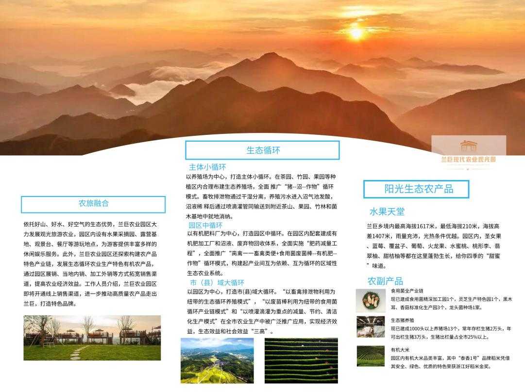 綠水青山、朗朗晴空、徐徐清風,是民生之要、百姓之盼。新時代背景下,生態文明建設是適應社會主要矛盾轉化、滿足人民美好生活需要的關鍵抉擇,生態農業發展是堅持生態惠民、生態利民、生態為民,實現鄉村振興的重要抓手。跋山涉水,步履不停;山高水長,映照初心。黨的生態建設實踐進程刻印著心系人民福祉、牽掛民族未來的深厚情懷;生態文明建設地位的不斷提高、生態農業的不斷發展,凸顯著新時代生態文明建設的重要地位。蘭巨農業園區依托其優質的生態資源,點綠成金;以其生動的生態農業建設實踐貫徹了習近平生態文明思想,詮釋了綠水青山就是金山銀山的生態理念,為其他地區推進生態建設和農業發展提供了行動范本。