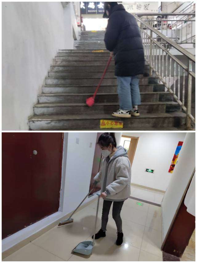 段瑾玉同學和尹梅同學對于各自轄區內的社區大樓進行了局部的清潔大掃除,做一些力所能及的事情。在黨群緊密配合和共同努力下,一段段路面井然有序,帶來了新的氣象,為居民提供潔凈、優美的生活 環境,讓居民過好即將到來的新年。