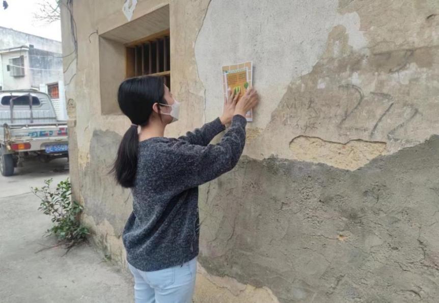 圖12 實踐團成員在后山村粘貼處理建議海報