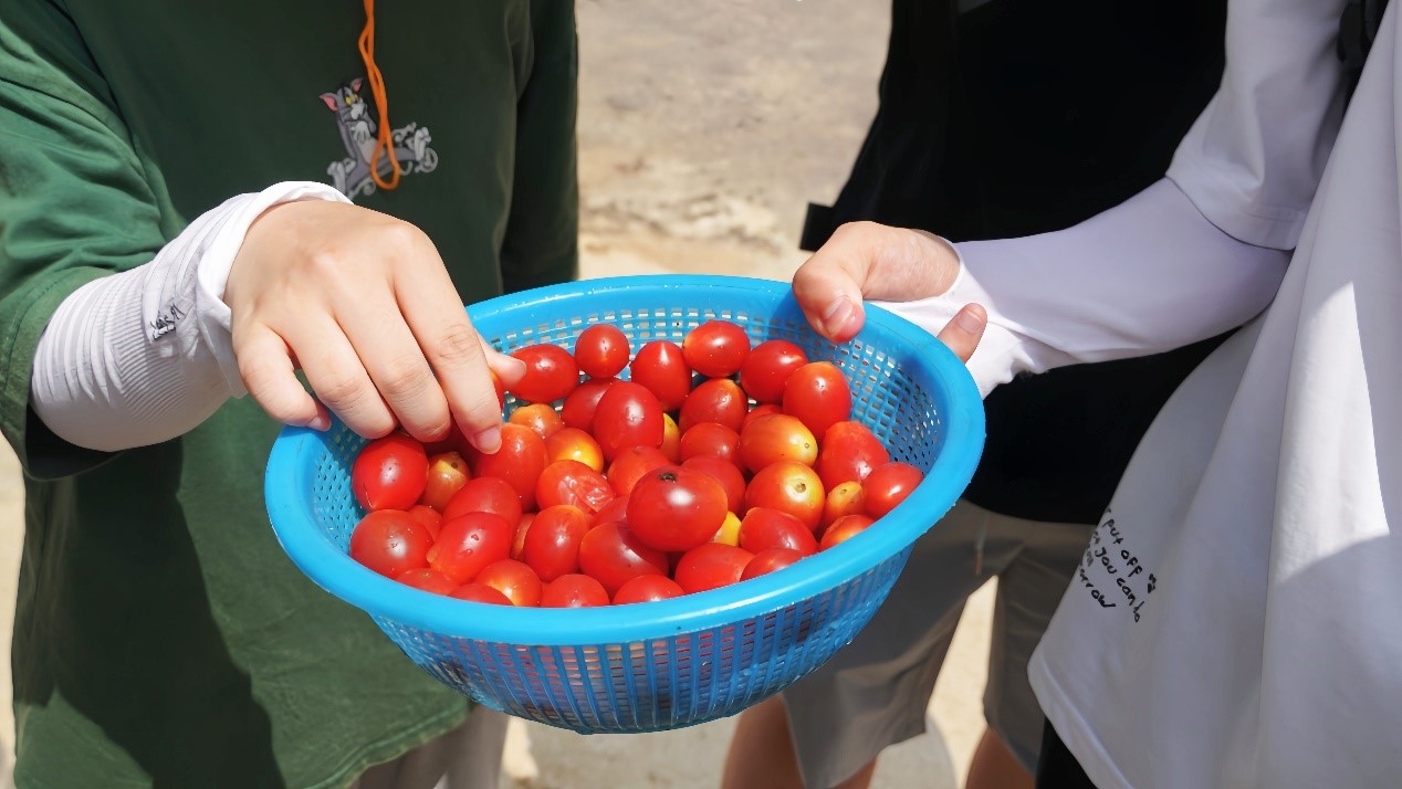圖為臧加超老板邀請團隊成員品嘗圣女果