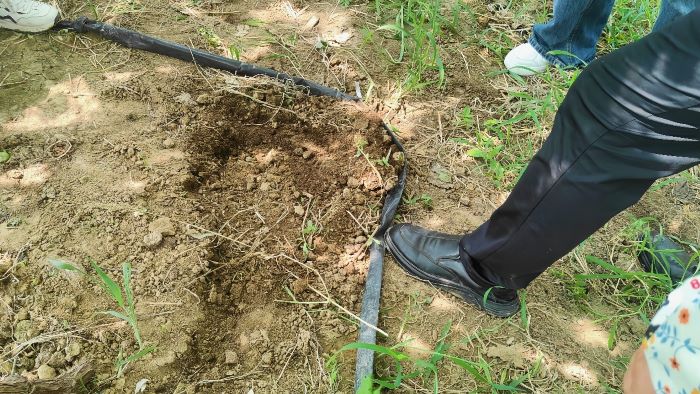 圖為臧加超老板向團隊成員展示家庭農場優質土壤
