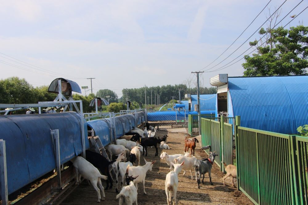 7月9日早晨,團隊成員在任春環老師的帶領下,抵達位于江淮分水嶺試驗站內部的皇竹牧業科技有限公司,了解畜禽現狀以及相關羊養殖技術。在任老師的介紹中,團隊成員初步學習到養殖場不同種質資源之間的生物學特性,舍飼養殖過程中遇到的較大問題,比如大多山羊由于角大、堅硬鋒利使其在種群內斗毆的時候,存在損壞設施設備情況,而山羊之間互相打斗也易造成個體間的傷害。為解決這個問題,安徽農業大學聚焦“三農”產業發展一線需要,統籌試驗站、產業聯盟、行業企業、以及種養合作社等資源,開展建設“科技小院”,培育無角山羊,以便于提高舍飼飼養養殖效率。