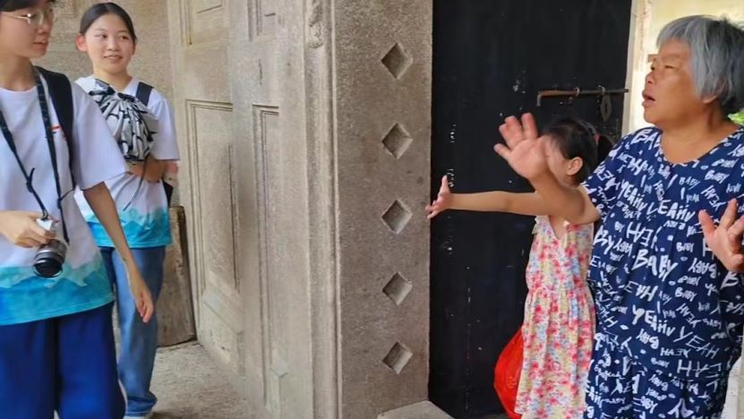圖為隊員們與阿婆及其孫女暢談。張子賢