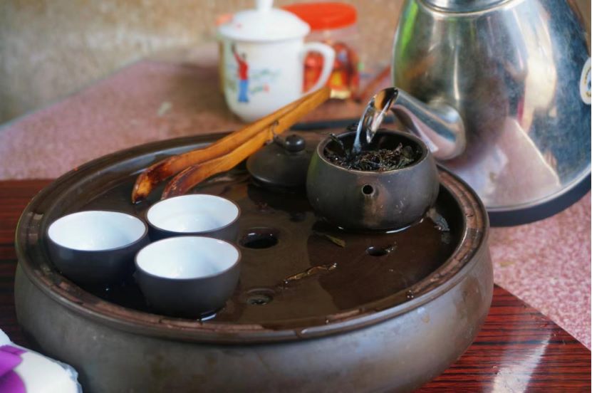 圖為阿婆為隊員們泡茶。