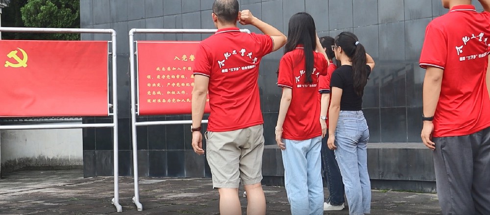 圖為實(shí)踐隊(duì)全體隊(duì)員在黨旗前宣誓。