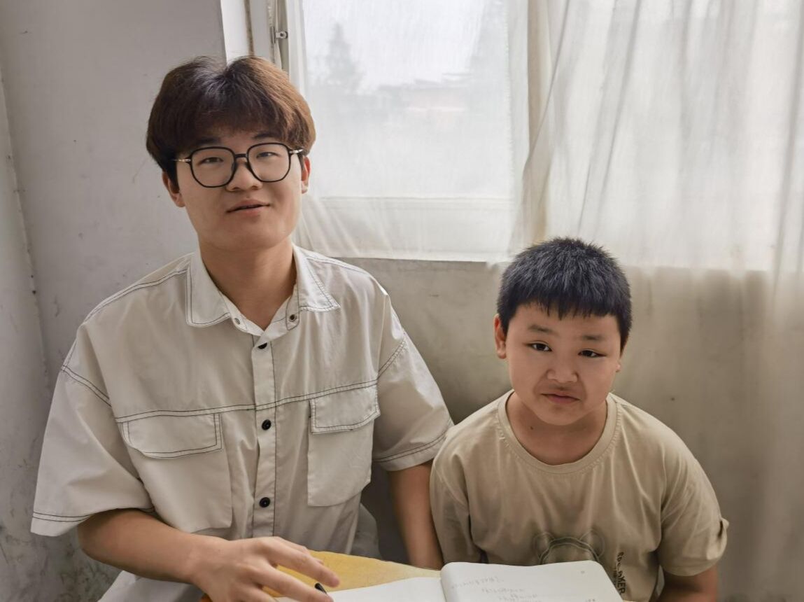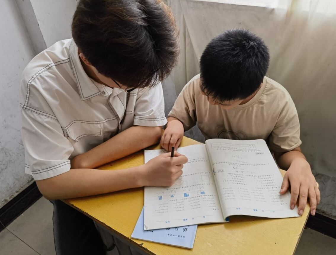 2023年7月17日,在安徽省臨泉縣老集鎮(zhèn)周莊戶村里,志愿者周俊龍去往當(dāng)?shù)卮迩f的一名留守兒童的家去幫助,輔導(dǎo)他學(xué)習(xí),一起玩耍。在他這個年紀(jì),志愿者本身也是一名留守兒童,所以志愿者深知情牽留守,愛暖童心的重要性。
