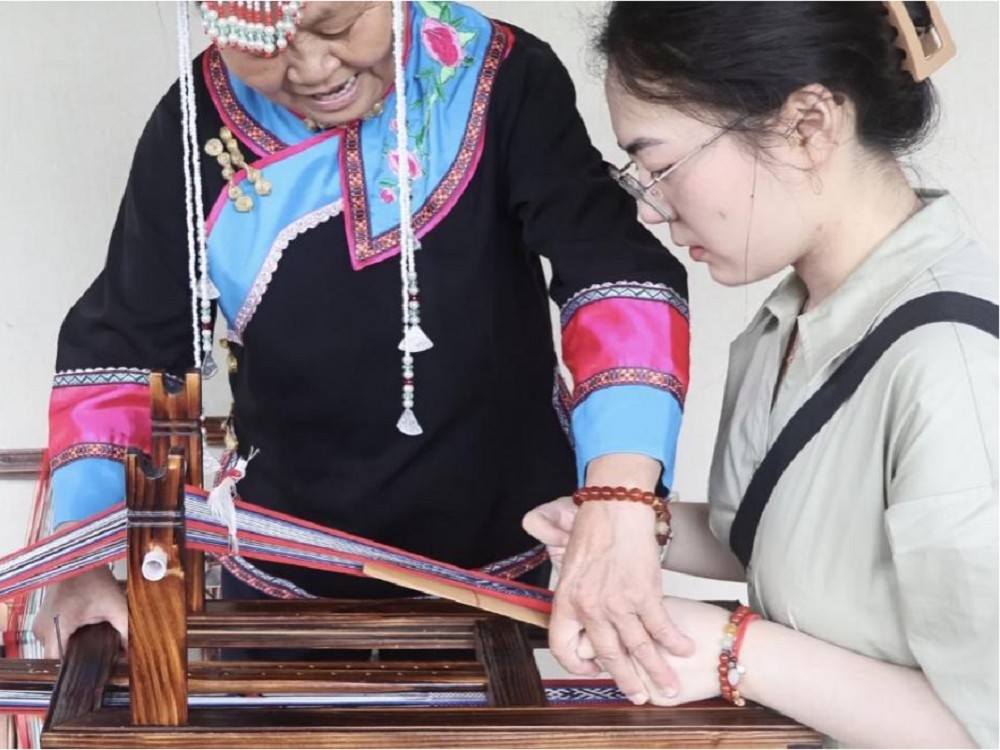 過和藍(lán)老師的交流,了解到織帶是畬族農(nóng)村婦女必學(xué)的手藝,藍(lán)老師從六歲起就跟著外祖母開始接觸彩帶,并勤學(xué)苦練。由于畬族人口占比不足全國總?cè)丝诘?.1%,其文化傳播力和影響力相對較弱。讓更多人了解畬族彩帶文化,是藍(lán)延蘭幾十年來一直深耕傳統(tǒng)民族技藝的初心。在提到她對促進(jìn)民族團(tuán)結(jié)的貢獻(xiàn)時,她非常謙虛地說:“我只是盡努力做好了自己應(yīng)該做的事。”