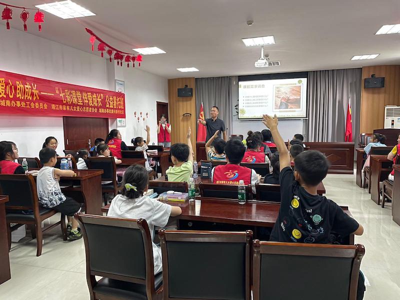 高校學生當起暑托班老師,為社區小學生帶來多彩微課堂;學生家長發揮特長走進社區……七月底,東南大學法潤青苗實踐團與靖江市人民政府城南辦事處工會、靖江市家有兒女愛心志愿者協會合作,開展“法潤青苗·至善馬洲”社會實踐項目,在靖江市康新興村社區為孩子們打造了一個家門口的暑期聚集地。