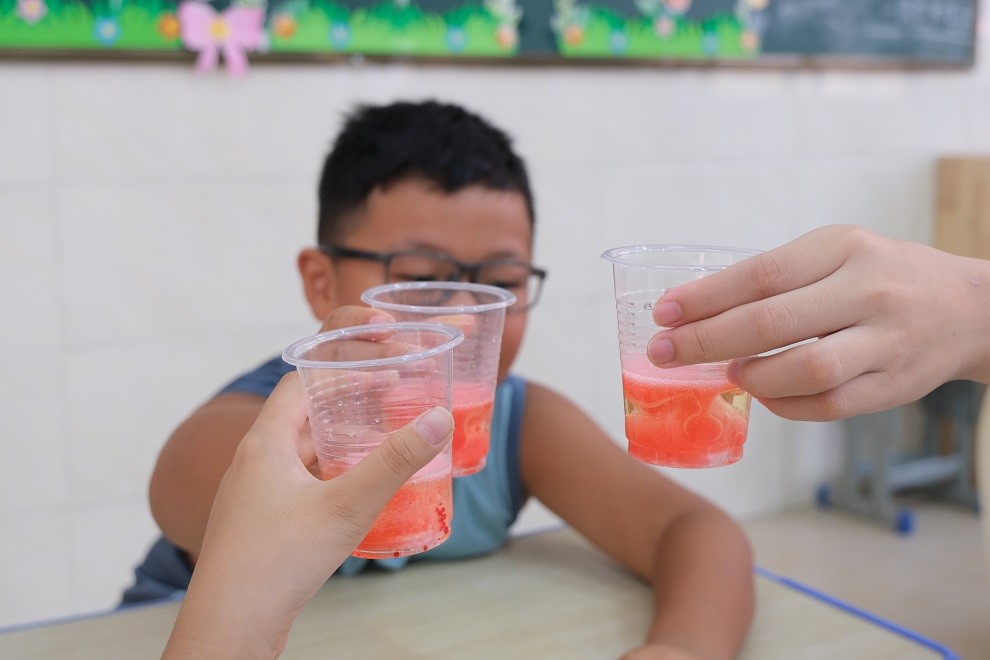 圖為隊員展示第一個實驗的材料。通訊員 賴錦瑩 攝