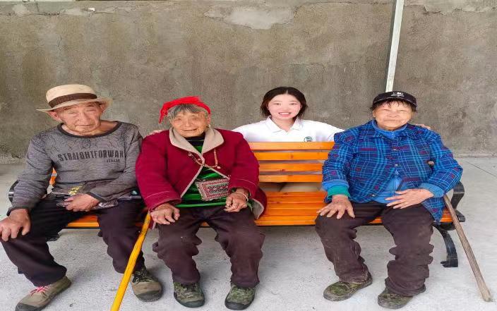 短暫休整過后,我的三下鄉之旅正式踏上軌道。在彎彎繞繞、依山傍水的山路間感受肆意馳騁,一如走進人間美景的詩篇,我看到了隱匿在山林間的康復村,這是我此行的第一個目的地。幾位奶奶坐在院中,安靜地編著那長發及腰的辮子,一點一點,輕輕撫摸著她們的頭發,還在頭上配上花來修飾,就如正值花季的小女孩一般,用頭發訴說著青春的悸動。我悄悄站在旁邊,望著奶奶頭發里藍色的深眸,那是我從未見過的美麗與深邃,陽光灑在她們臉上的皺紋上,像是歲月為她們畫下的印記,卻從不敗美人的風骨。她們親切的拉住我的手,用我聽不太懂的方言盡力的想表達著點什么,后來我才知道,原來那是滿滿的祝福。即便我們之前素未謀面,她們卻如真正的家人一般,像是看到自己的孩子那般高興,用行動不便的腿腳,顫顫巍巍地端來一籮筐土豆,強調著我一定得帶走。在離開了康復村之后,我來到了當地的敬老院。當我和其他成員激情澎湃地為他們表演時,我們能夠感受到爺爺奶奶熾熱的目光,即便我們的表演并不完美,他們依然會用最熱烈的掌聲給我們回應。我拉著他們的手,與他們攀談著日常生活、世界大事,用故事擦出火花,走進爺爺奶奶們的故事里。在離開時,望著奶奶抱著我,帽子下紅了的眼眶,嘴里不停強調著“我很幸福,我很幸福……”我轉過身去,淚水便再也忍不住,那是最真摯的愛深深地罩在我身上,我心里默默為他們祈福,一如他們對我們的祝愿。