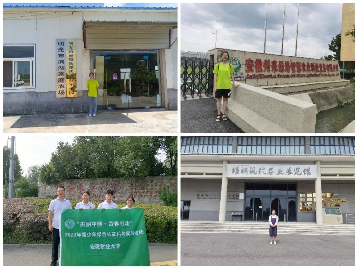 為擴(kuò)大調(diào)研樣本,尋找不同市縣的新型農(nóng)業(yè)綠色發(fā)展差異,7月15日-7月20日,團(tuán)隊(duì)成員進(jìn)行返家鄉(xiāng)調(diào)研活動(dòng)。在蚌埠市老長(zhǎng)淮家庭農(nóng)場(chǎng),團(tuán)隊(duì)成員體驗(yàn)種植大棚清理工作,深入瓜棚采摘蟠桃,檢查果實(shí)生長(zhǎng)狀況,關(guān)注到5G直播帶給農(nóng)場(chǎng)的重大變化。禾泉小鎮(zhèn)內(nèi),團(tuán)隊(duì)成員體驗(yàn)生態(tài)餐廳美味食物,觀賞到農(nóng)場(chǎng)的美麗風(fēng)光,探究到小鎮(zhèn)的生態(tài)旅游發(fā)展。滁州市螃蟹灣現(xiàn)代農(nóng)業(yè)產(chǎn)業(yè)園內(nèi),成員認(rèn)識(shí)到漁業(yè)區(qū)與農(nóng)業(yè)結(jié)合的立體生態(tài)農(nóng)業(yè)模式,見識(shí)到稻蝦共生、蟹池種草等共生生態(tài)和害蟲養(yǎng)蝦、蝦糞做肥,水草養(yǎng)蟹、水草凈水等共生原理。在鳳陽(yáng)小崗村,成員參與了小崗七星示范區(qū)農(nóng)業(yè)技術(shù)交流觀摩培訓(xùn)會(huì),并在一九七八生態(tài)農(nóng)業(yè)園留下了實(shí)踐的足跡;茨鲜兄輥(lái)綠港智慧農(nóng)業(yè)有限公司內(nèi),成員品嘗到紅紅黃黃的甜彩椒,紅彤彤,碩果累累的小西紅柿串果等,并看到加工、運(yùn)輸?shù)臋C(jī)器,包含采收、保鮮、包裝、運(yùn)輸?shù)雀咝У奈锪髯詣?dòng)化系統(tǒng)。成員深入宿州市埇橋國(guó)家現(xiàn)代農(nóng)業(yè)示范園,觀賞到園區(qū)的沙盤建設(shè)模型,了解了現(xiàn)代農(nóng)業(yè)的應(yīng)用形態(tài)。團(tuán)隊(duì)收集調(diào)研案例樣本,對(duì)鄉(xiāng)村綠色低碳發(fā)展有了新的思考與想法。