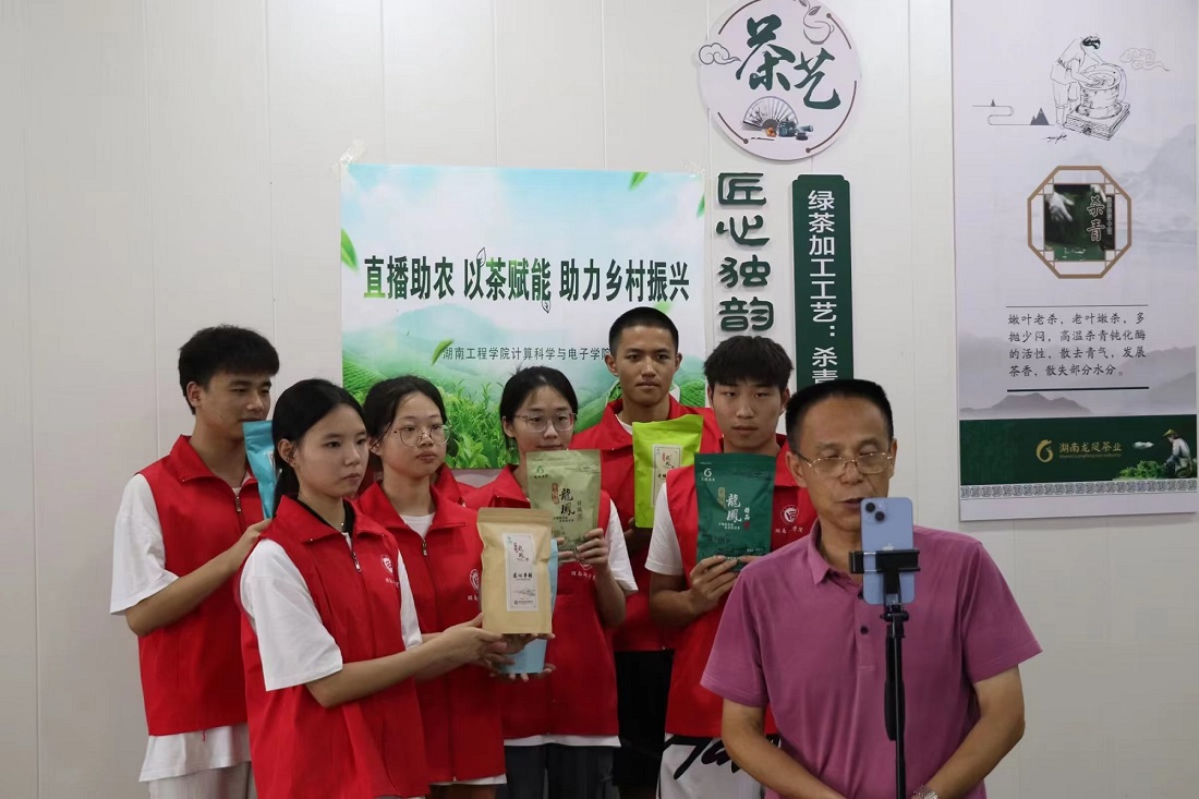 圖為實踐團成員與茶莊負責人一同直播助農 李韓輝 攝
