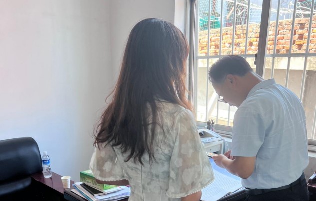 圖為實踐隊員與村委會工作人員交流 韋燁卿 供圖