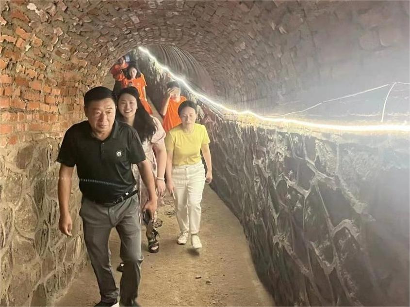 探秘歷史古跡,走進地下長城北營子村不僅有地上長城——明長城遺址,還有“地下長城”。防空洞作為用來防備敵人空襲減少損害的軍事掩體,與長城一樣,在戰爭年代發揮巨大作用,又被叫做為“地下長城”。隊員們在村書記的帶領下參觀了防空洞,防空洞位于北營子村衛生院舊址地下,蜿蜒悠長,全長約18公里。入口在衛生院走廊的小門里,下臺階進入洞內,清涼撲面而來,與夏日的炎熱形成鮮明的對比。緊接著看到很多小隔間,村書記說是為了救治傷員、儲存糧食用的。打開燈源后看到一條隧道,隧道高度不一,有的段位不到一人高,需要低頭甚至彎腰往前走,有的段位超過一人高。走一段,就會出現岔路口,分開不同方向的隧道。其中有一條貫穿北營子村南北,正上方就是明長城。不遠還有幾個正方形的豁口,用來觀察地面的敵情,隊員們不禁感嘆和贊賞前人的智慧。