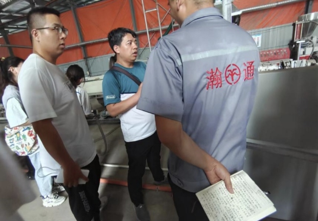 隨后,實踐隊來到了陜西雅美新材料有限公司。該企業是一家多年專業從事HDPE、UPE、MCPE、PP等塑料管材研發、制造、銷售、安裝服務于一體的高新技術企業,主要生產制造、銷售給水與排水管道系列產品。我們在這里看到了塑料管的生產原料,并看到了原料到產品的生產全過程。