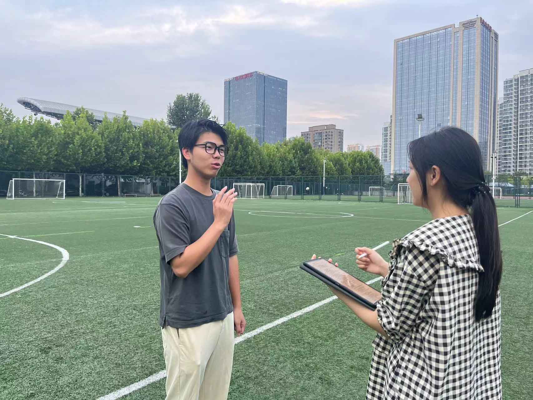 此外,在中國(guó)石油大學(xué)(華東)校園內(nèi),實(shí)踐隊(duì)隊(duì)長(zhǎng)任夢(mèng)茹也對(duì)幾位正在運(yùn)動(dòng)場(chǎng)上運(yùn)動(dòng)的學(xué)生進(jìn)行了簡(jiǎn)單采訪。其中一位受訪學(xué)生表示:“對(duì)于大學(xué)生來說,進(jìn)行體育運(yùn)動(dòng)同樣也是一項(xiàng)非常合適的休閑方式。運(yùn)動(dòng)不僅有利于維持身體的健康,同時(shí)也是一種在面對(duì)壓力時(shí),宣泄情緒的良好方式。我呼吁更多的同學(xué)們?cè)陂e暇之余,可以放下電子設(shè)備,和好友一起跑步、打球,在強(qiáng)身健體的同時(shí)增進(jìn)與他人的友誼。