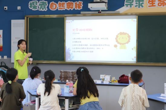 一堂別出心裁的語文和數(shù)學(xué)課:通過模擬情景的形式,實踐服務(wù)團(tuán)給小朋友們帶來了一堂別出心裁的語文課——財經(jīng)新聞播報和數(shù)學(xué)課——動物的匯率課堂。實踐服務(wù)團(tuán)借助帶有隊徽的話筒,模擬新聞播報真實場景,提升小朋友們的體驗感。動物的匯率課堂通過構(gòu)造充滿童趣的動物世界的匯率規(guī)則反映真實國際匯率機(jī)制,亦點燃小朋友們參與課堂的積極性,引導(dǎo)其踴躍發(fā)言。