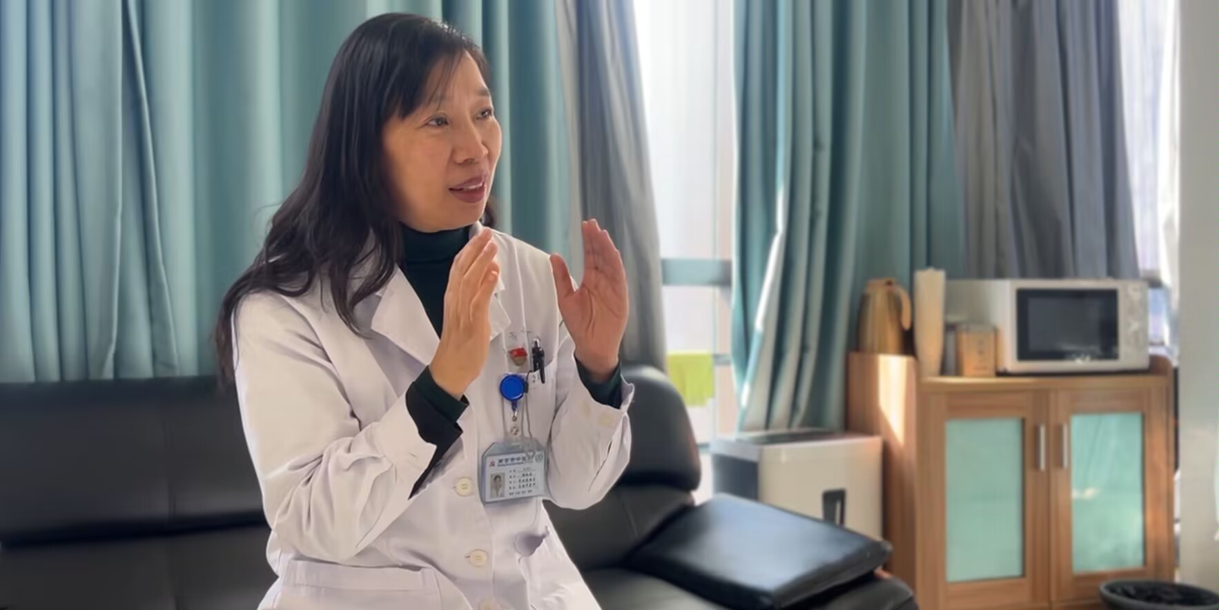 (圖為采訪南京市中醫(yī)院科技處處長隆紅燕 隊長張藝琳 供圖)