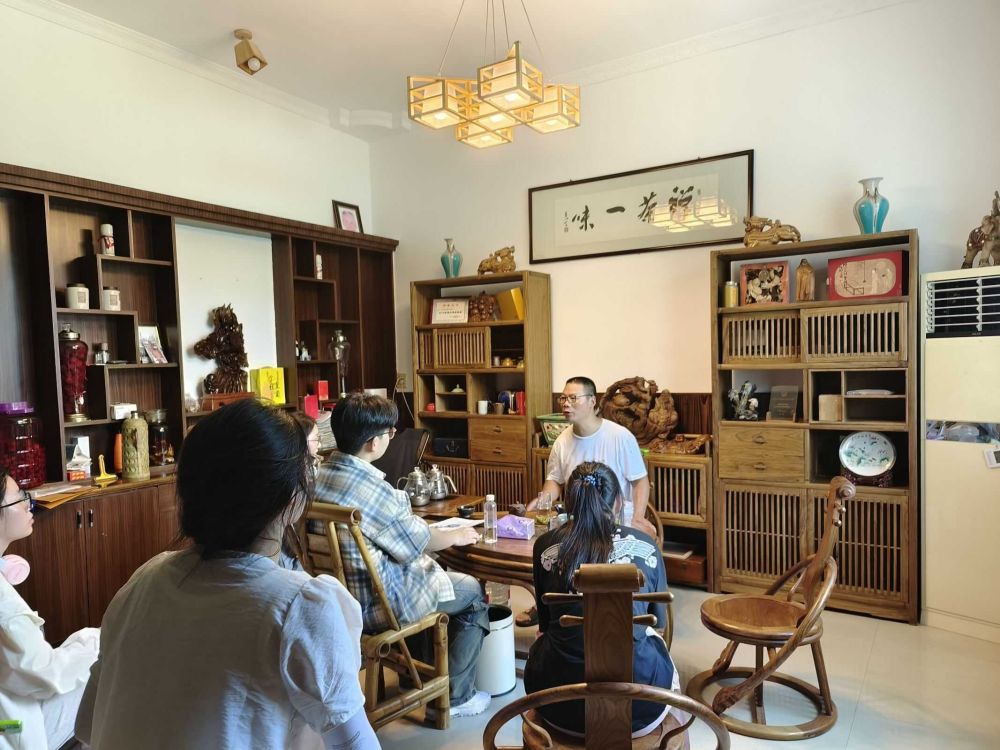 實(shí)踐團(tuán)成員們深入樺樹村文化禮堂與茶文化展示基地,了解了樺樹村發(fā)展現(xiàn)狀與旗槍茶發(fā)展歷史,充分結(jié)合自身學(xué)科優(yōu)勢,在講解過程中與工作人員形成良性互動(dòng)。在發(fā)問中尋求突破點(diǎn),在解答中貢獻(xiàn)金點(diǎn)子,促進(jìn)了政產(chǎn)學(xué)研的進(jìn)一步融合。