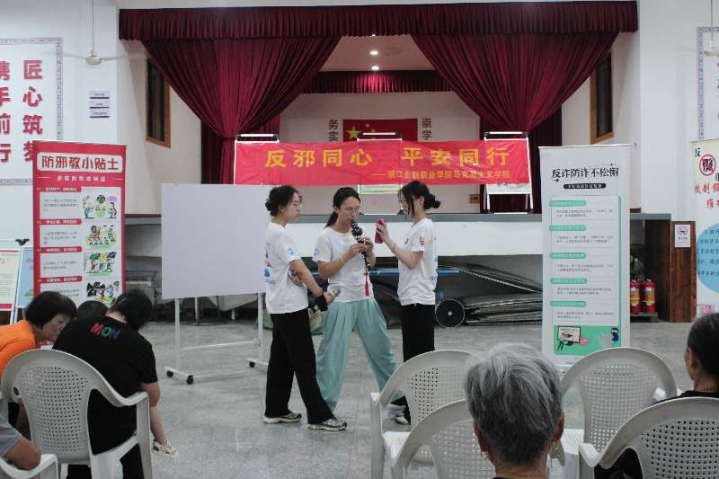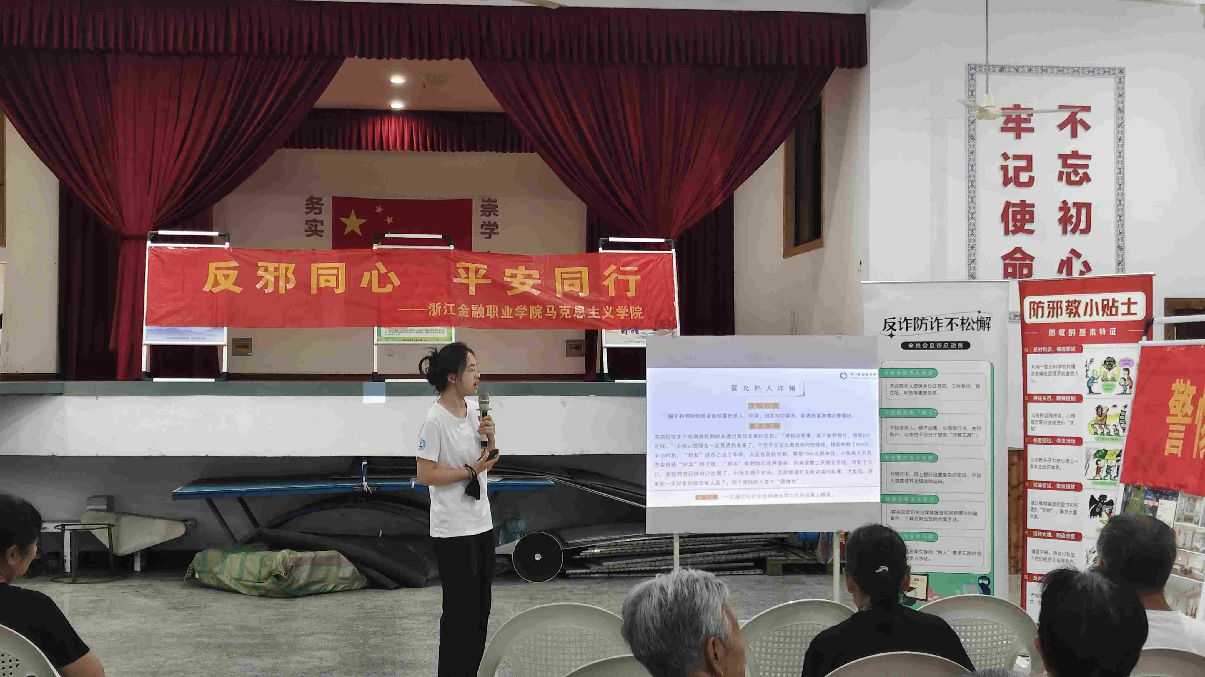 為推進思政小課堂與社會大講堂相結合,2024年7月3日上午,浙江金融職業學院“畬鄉行,傳文化,防騙識假反邪教”——馬克思主義學院桐廬縣莪山畬族鄉暑期社會實踐團,于桐廬莪山畬族鄉堯山村文化禮堂開展了反邪教、反詐騙、反假幣的“三反”宣講活動。