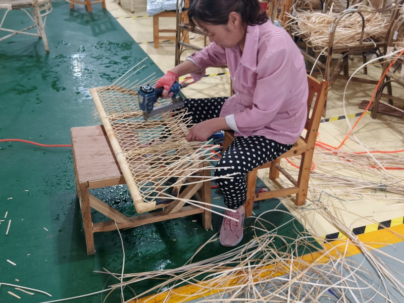 在負責人的引領下,隊員們走進藤編工藝品展示中心,領略了該工廠生產的眾多產品,其中包括銷往美國的汽車引擎。通過負責人的悉心講解,隊員們對公司藤編的設計理念、市場定位及藤編工藝特點有了深入了解。其后,實踐隊來到制作車間,這里陳列著各類編織相關的產品,諸如傳統藤編手工藝品、棕編家具等。這些產品均采用傳統手工技藝制作,每個產品都需歷經選材、蒸煮、切割等多道工序,由經驗豐富的工匠們精心完成。同時,隊員們還觀賞到了許多精美的手工藝品,如編椅、漆器、刺繡等,每一件展品都承載著深厚的文化底蘊和歷史沉淀。