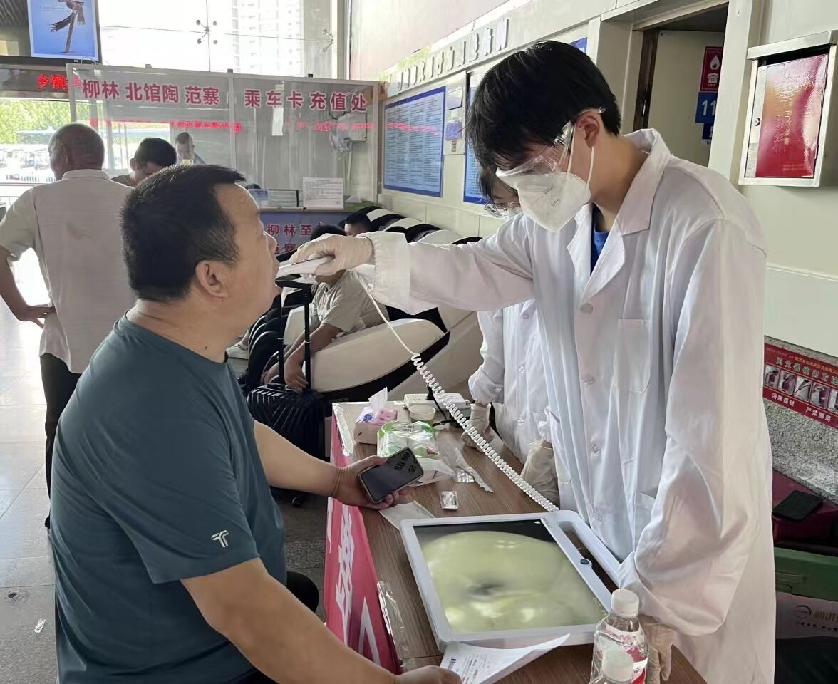 同時(shí),醫(yī)學(xué)院志愿者還進(jìn)行車站免費(fèi)義診活動(dòng),為車站旅客檢查口腔問題,以過硬的專業(yè)知識(shí)幫助旅客篩選牙齒疾病,普及護(hù)牙知識(shí)。一群群身著統(tǒng)一服裝的志愿者不斷穿梭于人群之中,以飽滿的熱情和專業(yè)的態(tài)度,積極完成自己的每一份工作,為旅客們編織了一條條充滿愛心的旅途。“參與本次車站志愿服務(wù),讓我更加深刻的感受到志愿服務(wù)的意義,更讓我收獲了寶貴的經(jīng)驗(yàn)與人生的閱歷。”一位志愿者說到。