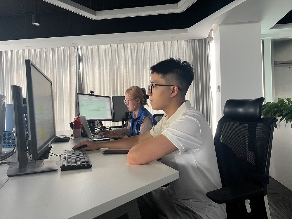 (圖為團隊成員在反詐中心聽警官講解工作。中國青年網通訊員 石昊原 供圖)