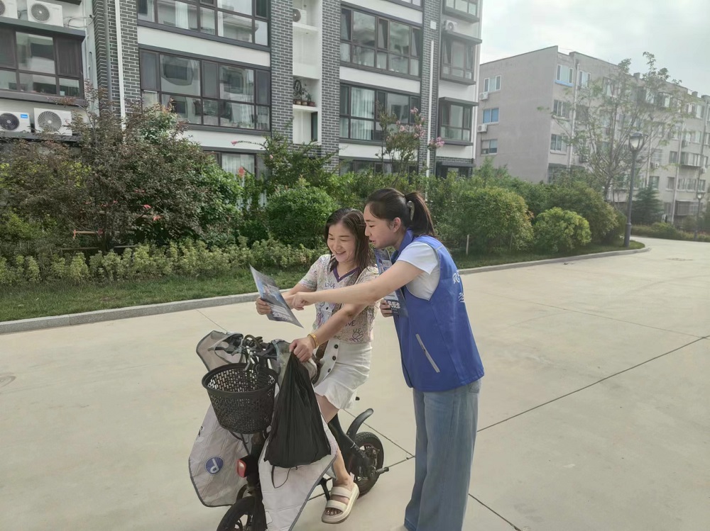 社區宣傳進行時,助力反詐無止境7月13日至14日,實踐隊成員分別前往煙臺牟平區安德利沁水河花園、煙臺市棲霞市翠屏街道迎賓社區、濰坊市濰城區南關康家社區、臨沂市蘭山區金信融城、濟南市市中區桿石橋社區、濱州市博興縣樂安小區等社區宣發有關反電信詐騙以及防范幫信罪的有關資料,助力反詐宣傳。實踐隊成員在主動給居民科普幫信罪知識的同時,還設立咨詢點,鼓勵居民積極參與反詐知識互動,并提供防范建議。
