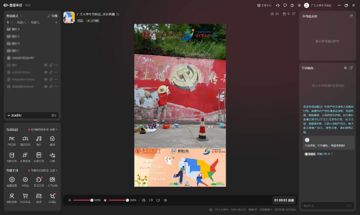 文化體驗 梅州五華雙華竹山村作為革命老區,擁有豐富的紅色文化資源,這些資源為當地的發展提供了獨特的機遇。將紅色文化與直播結合,不僅可以傳承和弘揚紅色精神,還能帶動當地經濟發展,促進鄉村振興。隊員們通過直播修繕竹山村紅色墻繪,結合直播的實時性特點,讓觀眾身臨其境地感受紅色文化及其魅力,吸引更多觀眾關注直播。