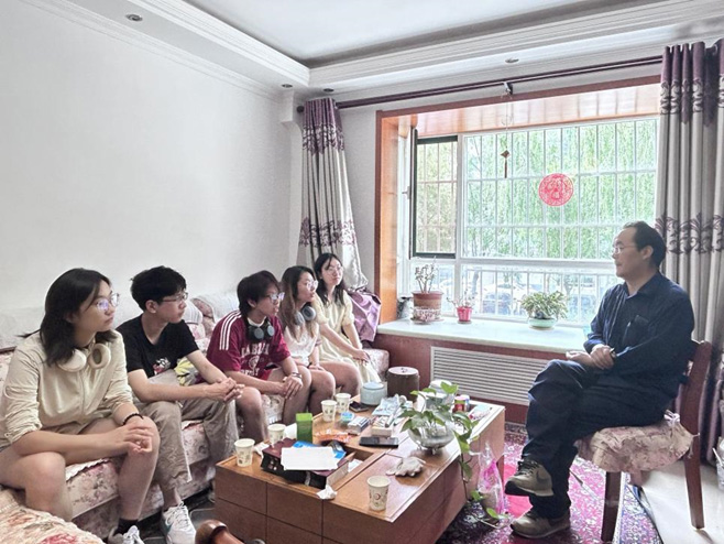 實踐隊員對游客進行采訪 三、以驛會師,悟道相承實踐隊伍前往蘭州大學二分部家屬院,與蘭州理工大學考古研究所唐曉軍博士進行訪談。隊員們在博士的娓娓道來中領略絲綢之路的風采,并向其請教了有關絲綢之路及其沿線古驛站的相關歷史文獻資料和背景故事。面對實踐隊的積極提問,唐博士以其深厚的知識儲備向隊員們耐心解答。同時,唐博士還對隊員們所調研的內容進行了擴展和深入,告訴實踐隊員們要“要將文化背景與建筑研究緊密地聯系起來”,為實踐團隊后續的研究點出了新方向。