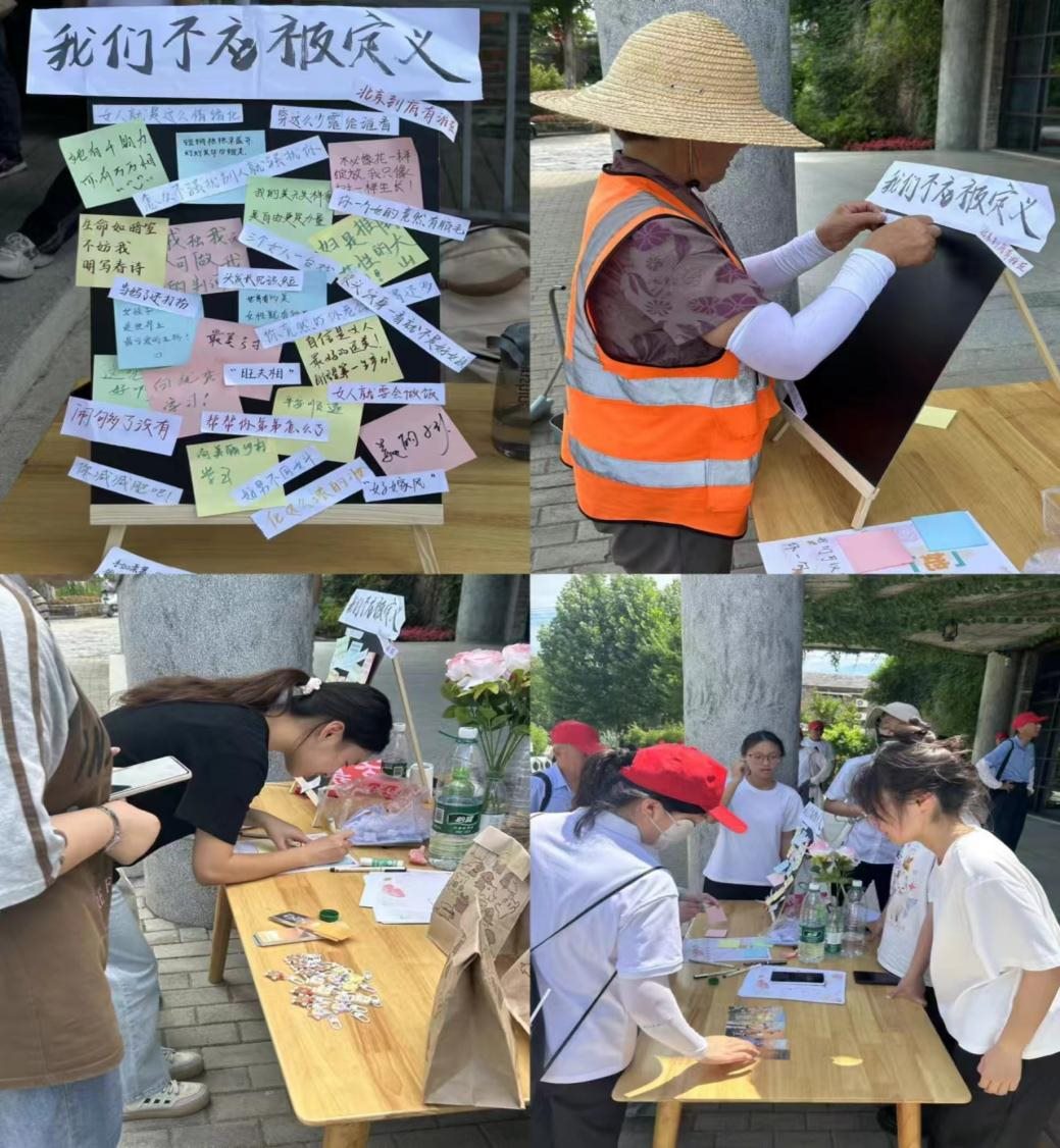 活動中,大家在便簽上寫下對女性的贊美,并貼在事先準備好的黑板上,有許多游客和社區(qū)的工作人員都積極參與其中,現(xiàn)場氛圍輕松愉悅。