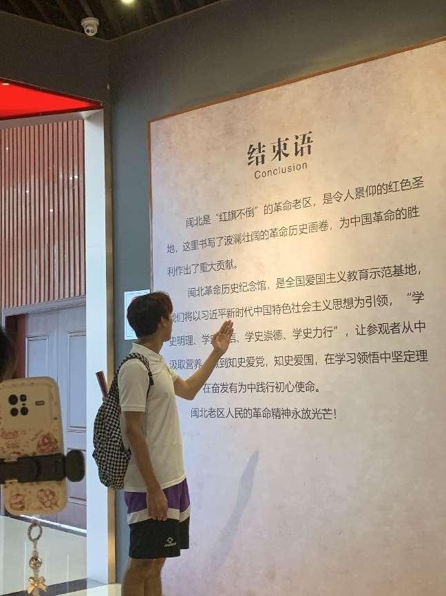 在武夷山的青翠懷抱中,閩北革命歷史紀念館莊嚴肅穆的佇立著,映照著革命先輩們的英勇與不屈。館內一幅幅珍貴的歷史圖片和一件件真實的文物,它們無聲地講述著那段波瀾壯闊的革命歷史。參觀過程中,團隊采用了自媒體直播的方式讓更多人感受到了革命先烈們的崇高精神和堅定信念。通過此次參觀,不僅了解了閩北革命的歷史,更讓我們明白了革命精神的真諦。這種精神也將激勵我們在今后的生活中不畏艱難,為祖國的繁榮富強貢獻自己的力量。