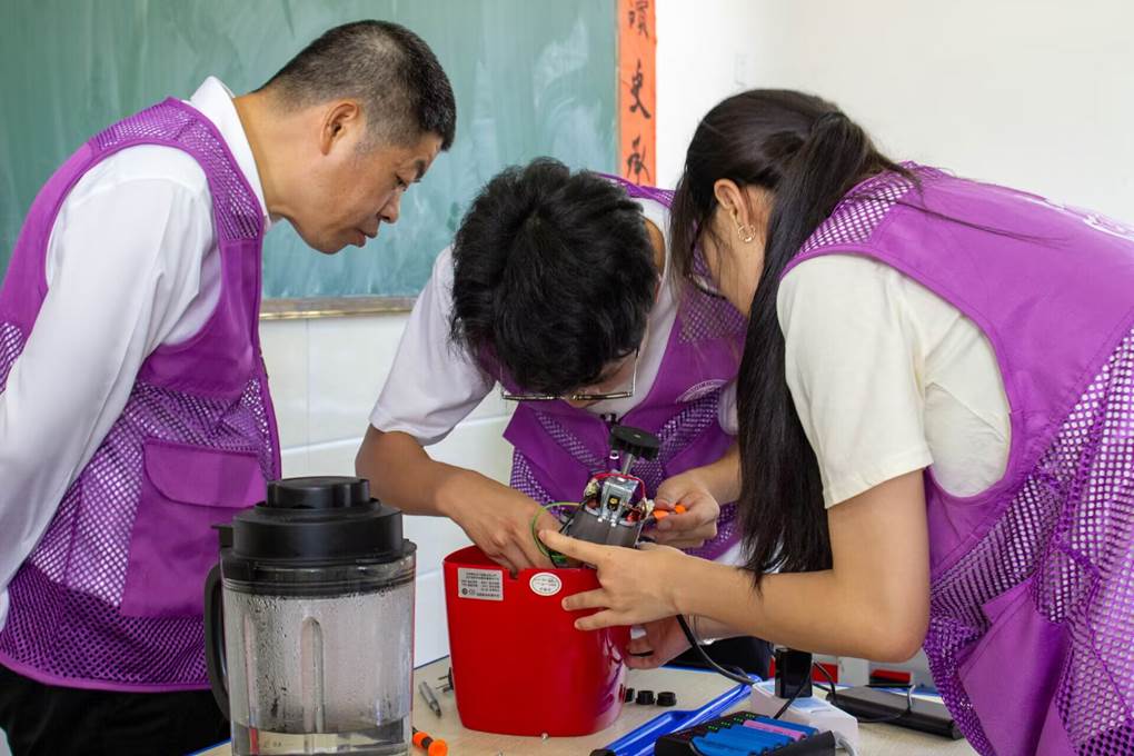 技術助農,守護少數民族鄉親用電安全 實踐隊在畬族鄉當地開展主題為“義修有我,溫暖同行”的家電義務維修志愿服務活動。前來維修家電的鄉親絡繹不絕,實踐隊隊員們各司其職,有的負責接應村民,有的負責排查故障,有的負責動手修理,分工明確,井然有序,現場十分熱鬧。經過“小師傅”們的妙手回春,電飯煲、吹風機、破壁機等各式各樣的家用電器都“滿血復活”,恢復功用。一個上午的工夫,實踐隊員們幫助村民們成功修好十余件家電。