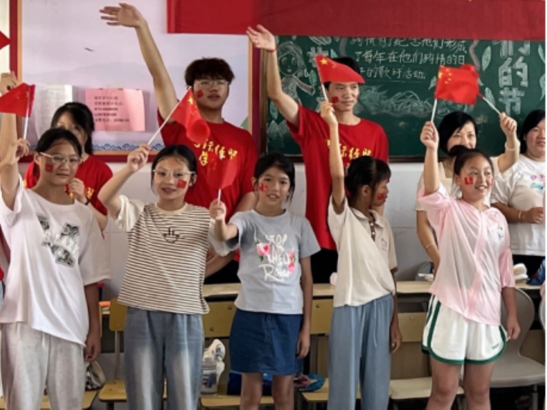 除了開展基本課程,愛國主義教育與黨史教育也不能落下。如何讓孩子們切身體會愛國精神并有效的開展愛國主義教育成為了迫在眉睫的問題。“漓漓圓上草”支教團隊隊員耿弼暉提出:“應(yīng)擯棄原本一味地在黨史課上進行宣講的模式,轉(zhuǎn)而將愛國主義教育與日常的教學(xué)有機結(jié)合在一起,把‘硬植入’變?yōu)?lsquo;軟植入’。”
