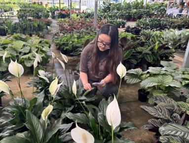 圖為團隊成員顏欣彤在進行園藝知識學習
