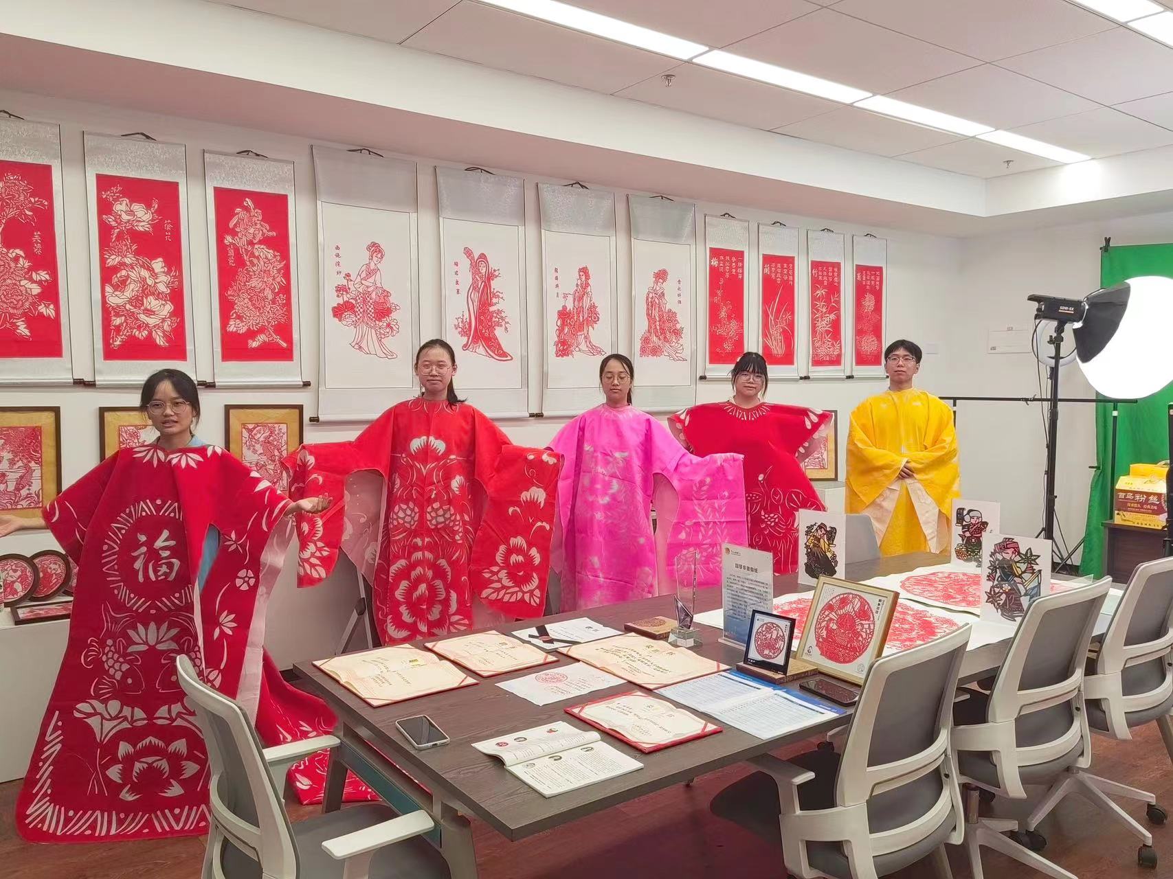 實(shí)踐團(tuán)成員試穿剪紙漢服