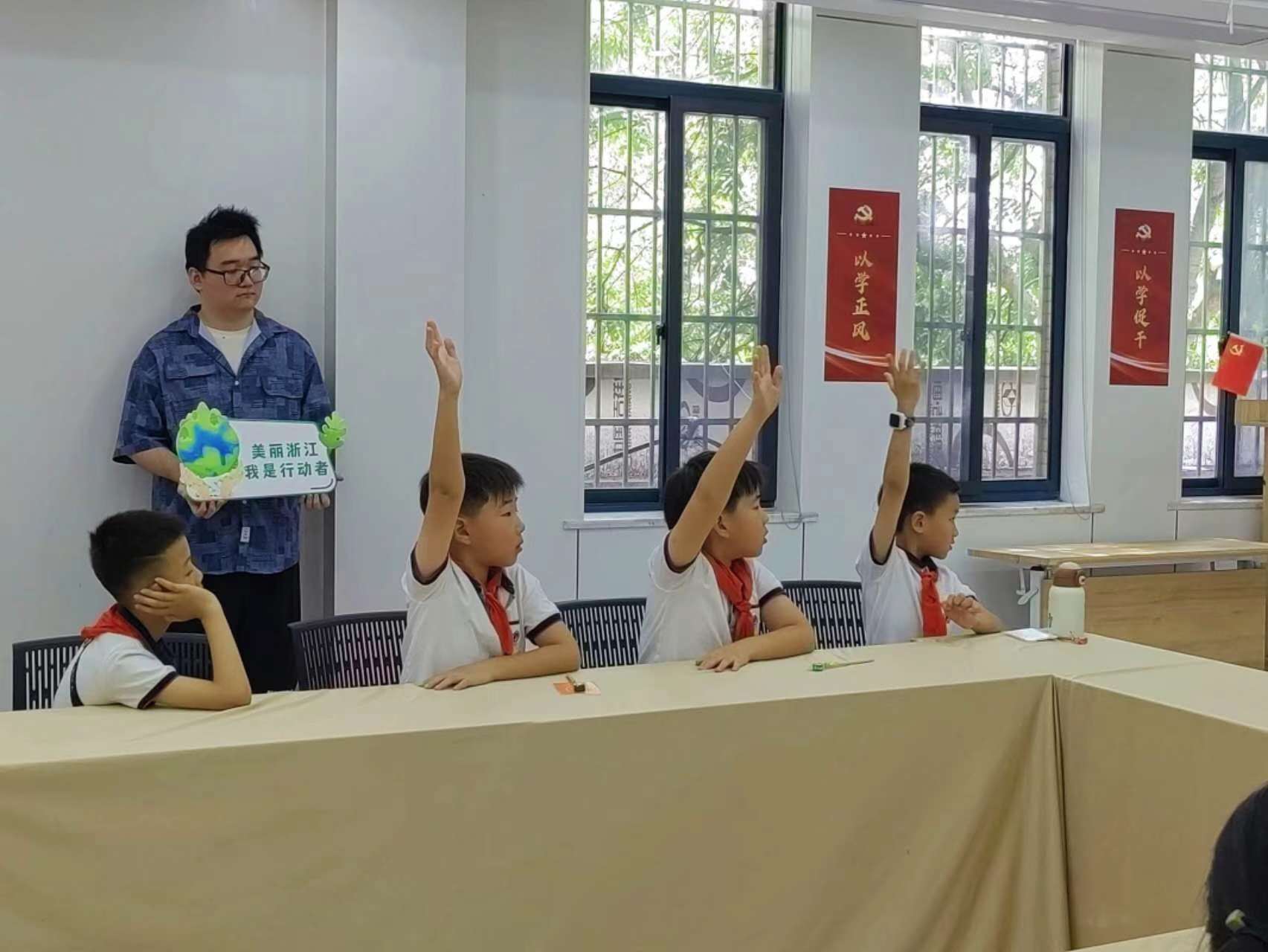一、綠意盎然,知識啟航為深入社區,社區兒童對環境保護的認識,培養他們對自然生態的尊重與愛護之心。因此微塵小隊來到錢塘區多藍水岸社區,以其獨特的創意,為小朋友們呈現了一場別開生面的“綠色”宣講。在宣講過程中,小隊成員巧妙地將在中國濕地博物館與西湖博物館學習到的豐富環保知識融入生動的案例中,通過引人入勝的講述,讓孩子們仿佛親身經歷了那些關于濕地保護、生態平衡的感人故事。宣講中,小隊成員們不僅為其展現了濕地與西湖的壯麗景色,更深刻剖析了生態保護的重要性與緊迫性,激發了孩子們對自然生態的濃厚興趣與深切關懷。