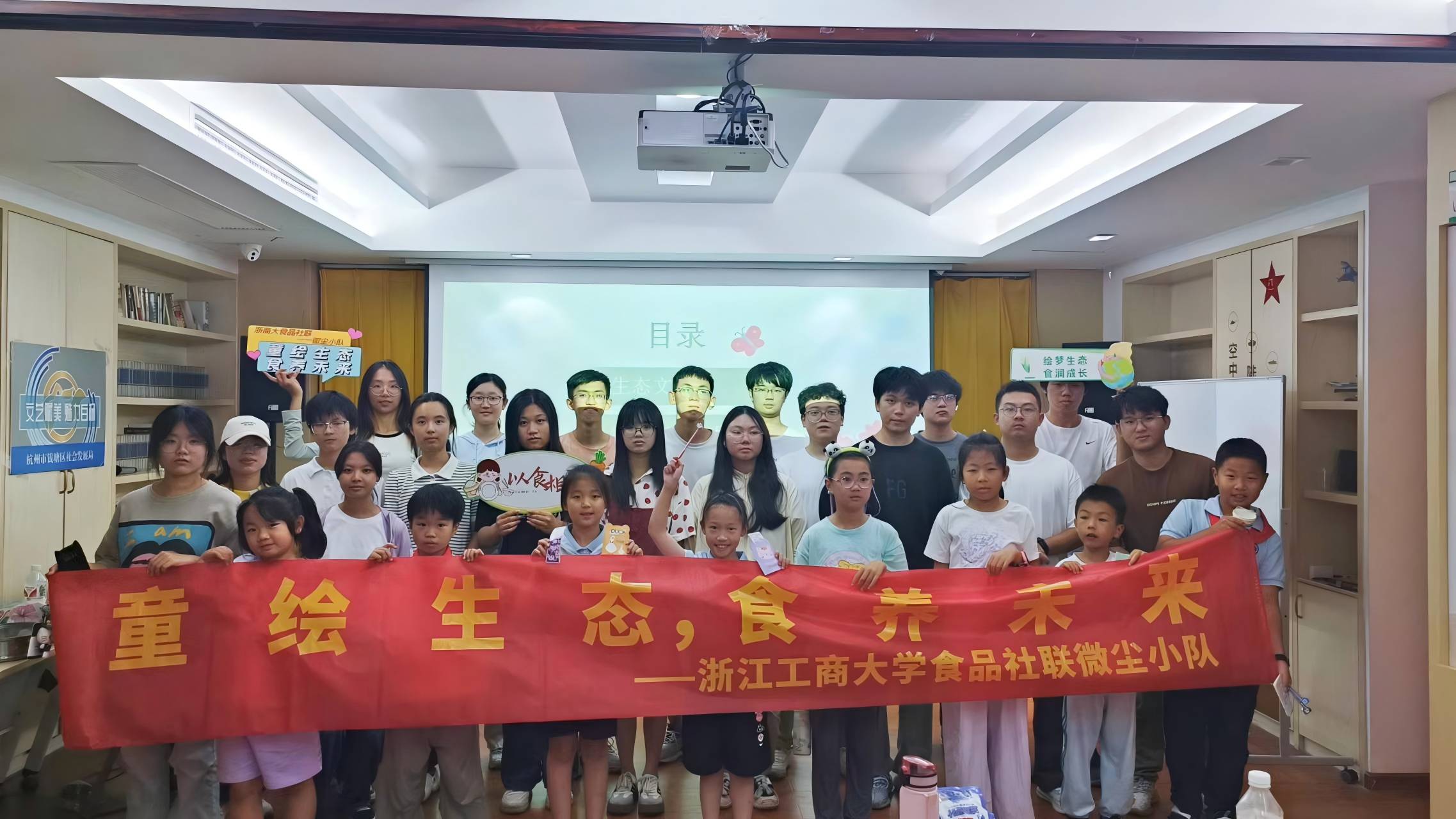 在快速發展的現代社會中,生態文明建設日益成為國家發展的重要議題。隨著城市化進程的加快,人與自然的和諧共生顯得尤為重要。微塵小隊積極響應國家號召,深刻認識到青年學生在生態文明建設和社區服務中的重要作用。因此,2024年7月,由浙江工商大學食品與生物工程學院社團聯合會組成的微塵小隊以“童繪生態 食養未來”為主題進行了一系列暑期社會實踐活動。