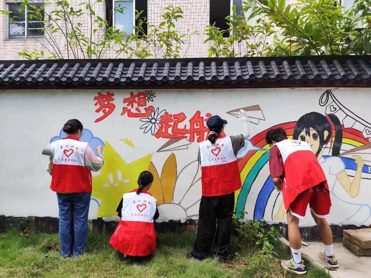 廣金筑夢(mèng)支教團(tuán)隊(duì)還積極響應(yīng)鄉(xiāng)村振興戰(zhàn)略,開展了以“夢(mèng)想起航”為主題的鄉(xiāng)村墻繪活動(dòng)。團(tuán)隊(duì)成員們以畫筆為媒介,將夢(mèng)想、希望與正能量融入一幅幅精美的墻畫中,每一筆、每一劃,都承載著廣金學(xué)子對(duì)美好生活的向往和追求。不僅美化了鄉(xiāng)村環(huán)境,更在潛移默化中傳遞了積極向上的價(jià)值觀,當(dāng)一幅幅生動(dòng)的墻畫在鄉(xiāng)村的墻面上綻放,它們不僅成為了鄉(xiāng)村的一道亮麗風(fēng)景,更成為了激發(fā)村民對(duì)未來生活憧憬的源泉。