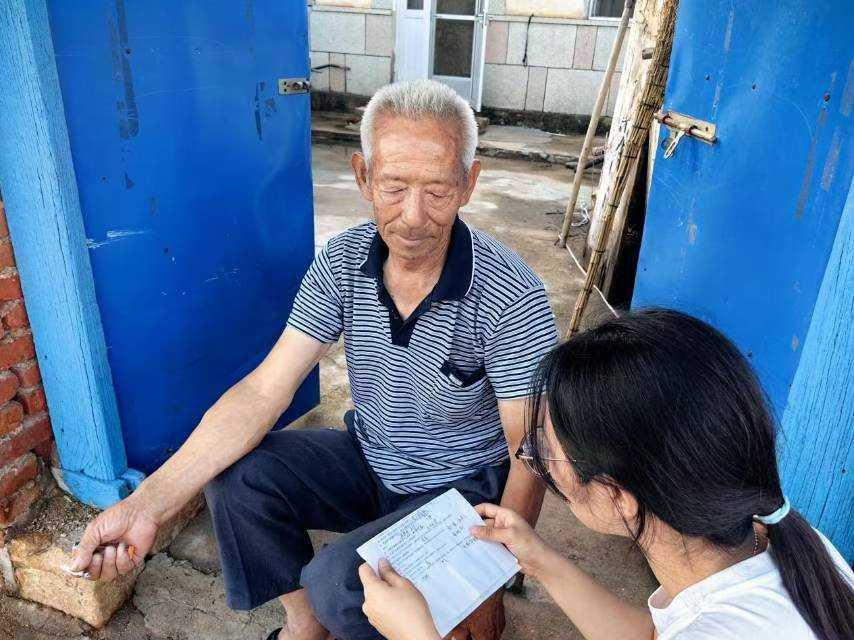 圖為社會實踐隊員采訪老人 中國青年網通訊員 謝欣 攝