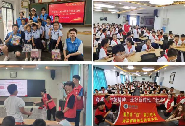 6月15日、6月30日、7月8日及7月23日,宣講團走進了陜西省渭南市徐涵村、西安市長安區郭杜街道居安路第二社區、西安市長安區神洲路第五社區及城關街道花園社區志愿服務基地,為社區內的孩子們帶來了別開生面的西柏坡活動。宣講團成員通過生動的語言向孩子們講述了西柏坡作為中國革命重要轉折點的故事,通過通俗易懂的語言講述了西柏坡會議的歷史背景及其在中國革命史上的重要地位,也通過講述革命先輩的英雄事跡,孩子們被革命精神深深感染。在手工制作環節,孩子們在志愿者的指導下,動手制作了象征西柏坡精神的手工藝品,如紅色旗幟和西柏坡精神的五角星圖案,這些活動不僅鍛煉了孩子們的動手能力,也讓他們在實踐中更好地理解了西柏坡精神的內涵。