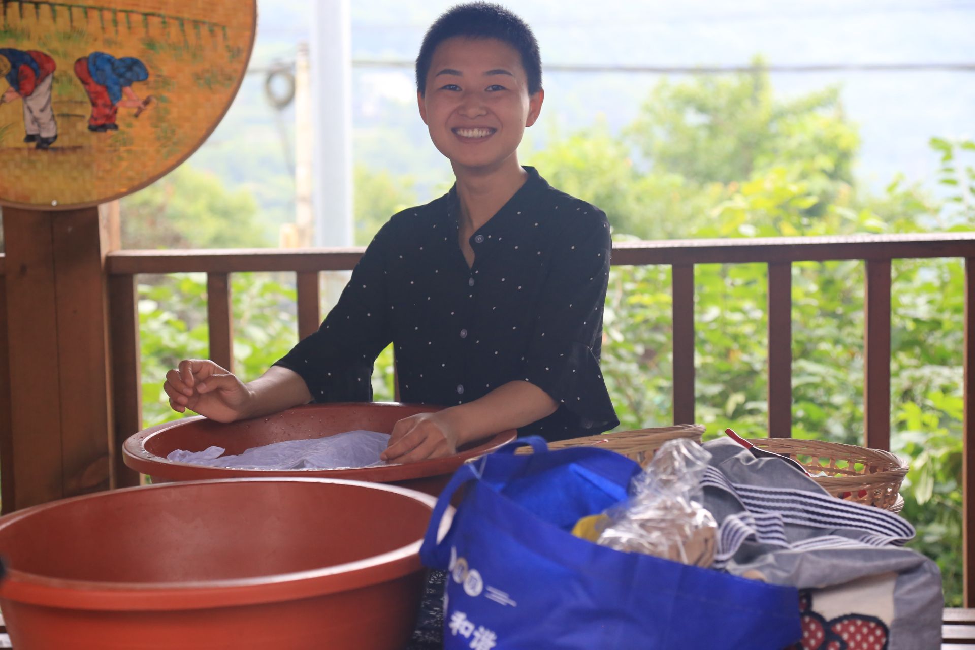 圖為中壩村黨總支副書記蔣婷婷帶領大家學習扎染。楊珍攝