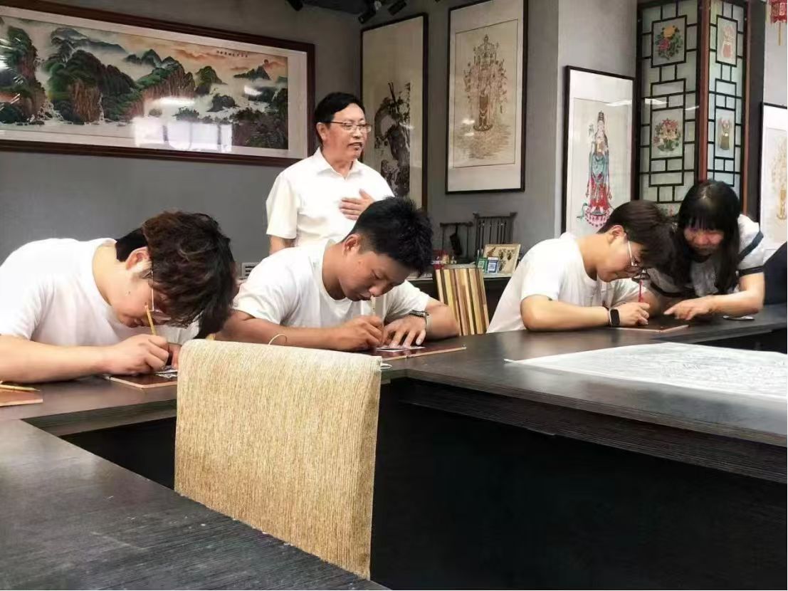 實踐隊員體驗蔚縣剪紙獨特的雕刻技藝