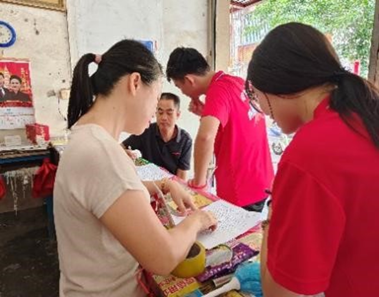 團隊成員走訪調研,以問卷形式宣傳資助政策