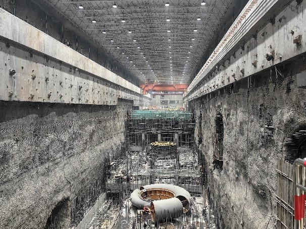 對于江蘇省句容抽水蓄能電站,同學們的訪問從發電環節開始,走進了句容電站在建的地下廠房。這里的技術人員向同學們說明了抽水蓄能電站的工作機理以及工程樞紐的布置情況,強調了雙碳政策在激勵清潔能源投資和技術創新方面的積極作用。