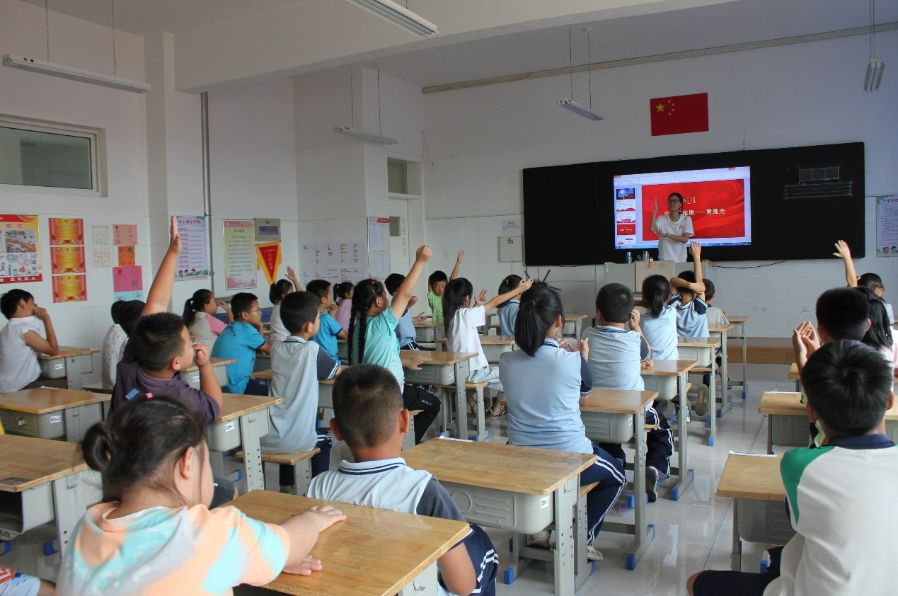 圖為實踐團成員為孩子們上紅色文化課。山東理工大學李穎能提供