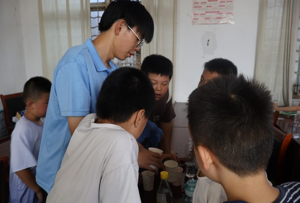 (圖為課程中,實踐團成員張克杰為同學們示范化學實驗 譚曉蕾攝)